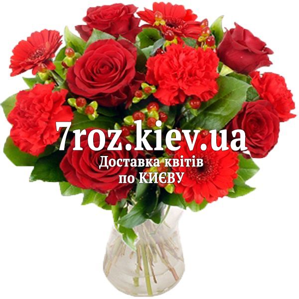 Букет квітів із 6 троянд, 4 гвоздик і 3 гербер