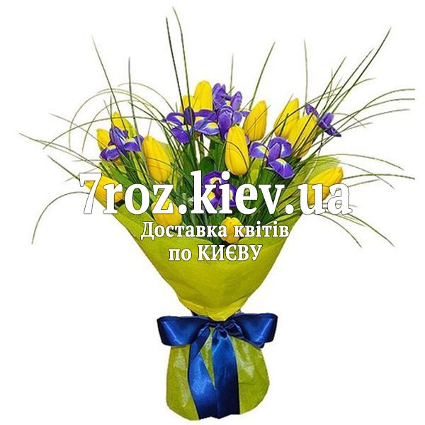 Букет із 13 тюльпанів і 8 ірисів