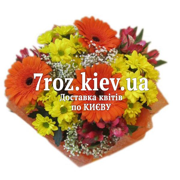 Букет із 3 гербер, 3 хризантем і 3 альстромерій
