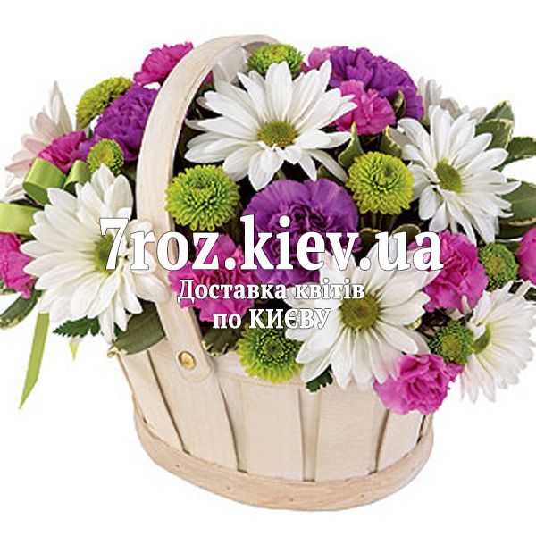 Кошик із хризантем і гвоздик
