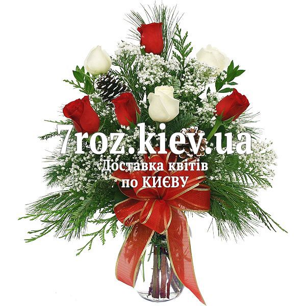 Зимовий букет квітів з троянд і ялини